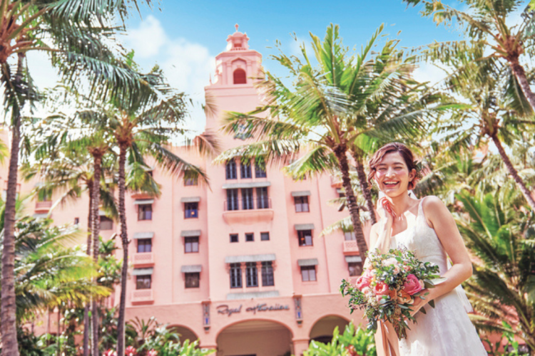 ピンクパレスとオールドハワイの庭がフォトジェニックなガーデン挙式