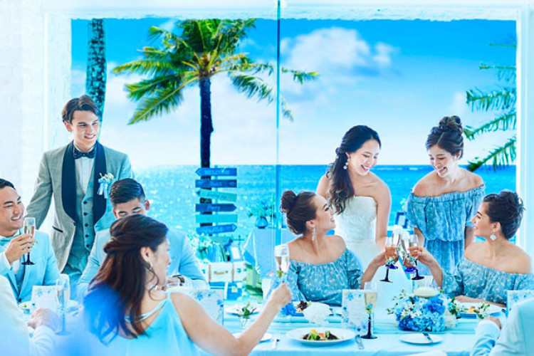 チャペルすぐ横にある、オーシャンフロントのプライベートガーデン付バンケットは、美しい海を眺めながらパーティがおこなえます。美味しい食事と素晴らしい景色でゲストをおもてなしできます。