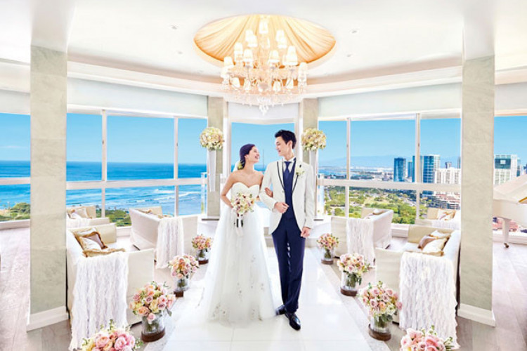 地上107mからハワイの絶景を望む天空のチャペル。楽しい思い出&素敵な写真いっぱいのウェディング。ハネムーンと一緒に挙式するなら、ワタベウェディング!はじめてのハワイでも現地スタッフ常駐で安心。