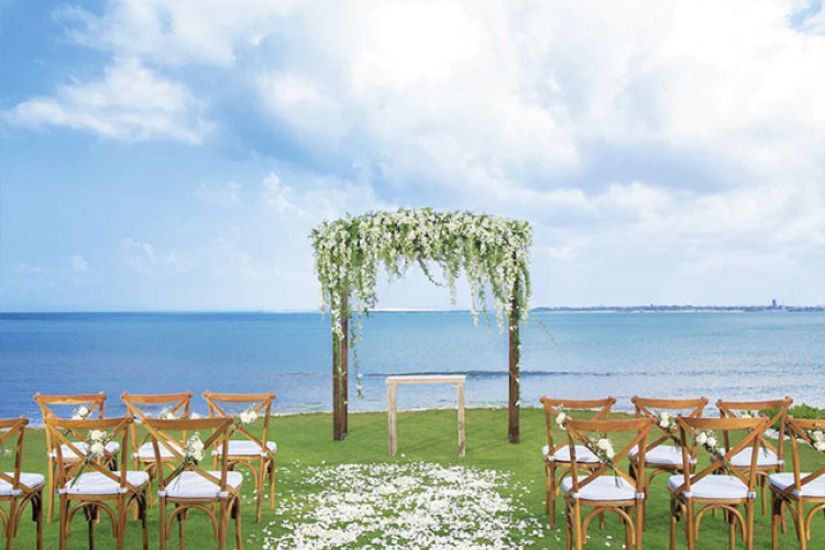フォーシーズンズリゾート バリ アット ジンバランベイでガーデンウェディング!世界的ラグジュアリーホテルのプライベートで贅沢な挙式。目の前には何もない海が広がり、開放的で贅沢なロケーションを独り占め。