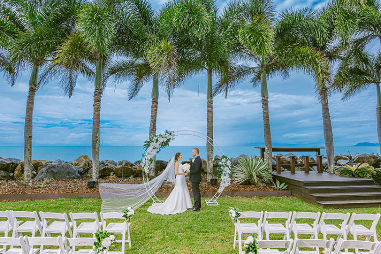 オーストラリア・ケアンズの完全プライベートハウスでガーデンウェディング。美しい海を一望できるロケーションで、ケアンズらしい広大な自然と爽やかな風を肌で感じながら、プライベートなセレモニーが叶います。
