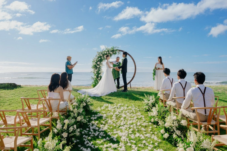 挙式+衣裳+メイク+撮影データ付き!プライベート感満載のオーシャンビューガーデンウェディング