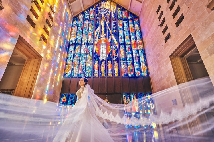 石造りの重厚な存在感のある外観で中世ヨーロッパを彷彿とさせるクラシカルな雰囲気。天井まで届くハワイ最大級のステンドグラスは圧巻。歴史と伝統のある大聖堂で、格調高いウェディングを