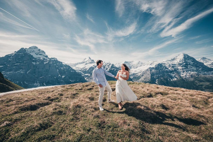 人気のスイスでフォトウェディング!約100枚の充実撮影!日本人美容師がアテンドするので言葉の不安も安心! HISなら衣裳ブランドが3社から選べる!事前に日本試着もOK!