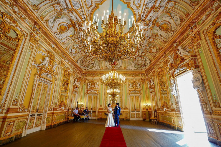 豪華絢爛な彫刻とシャンデリアで埋め尽くされた宮殿ウェディング