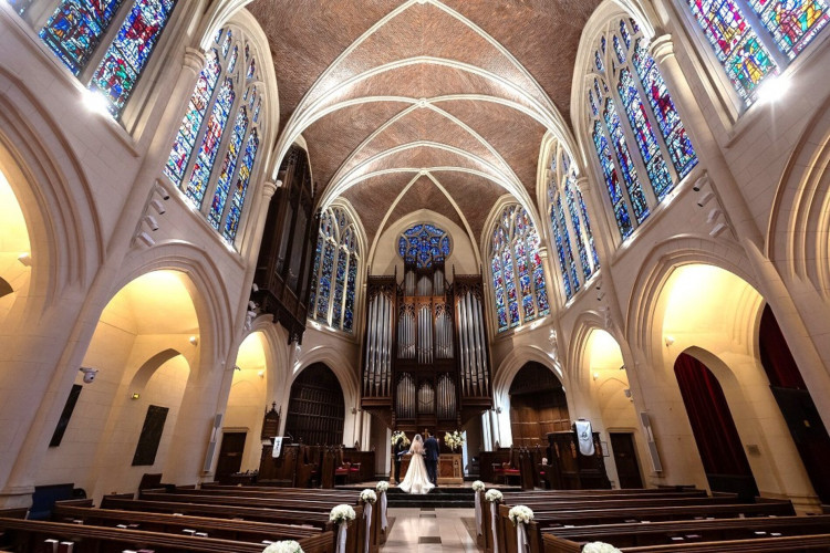 通常価格1,313,000円から255,000円お得になるパッケージプラン♪ 天井のシャンデリアの煌きや、3375本ものパイプによるオルガンが奏でる音楽など、印象深いセレモニーが実現できるはずです。