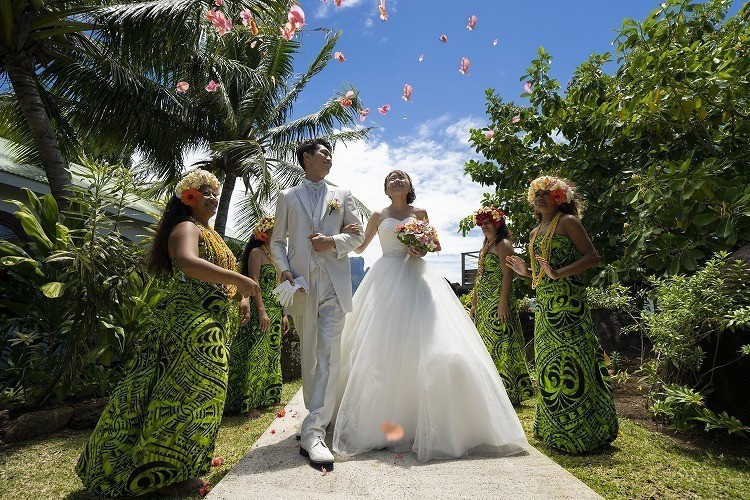 | 上記のほかに含まれるもの | *乾杯用シャンパン(ハーフボトル1本) *ウエディングケーキ(新郎新婦様用) *タヒチアン・カヌー乗船(挙式後) ※カヌーでのご移動は、雨天の際は中止となります。 |