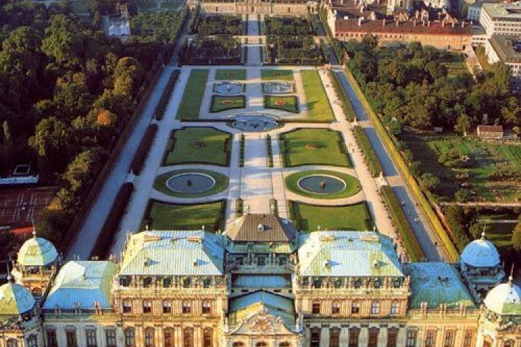 バロック建築の宮殿にはオーストリアで2番目に大きな美術館があります。繊細な装飾が施されたオクタゴンのサロンにて挙式を執り行います。挙式後は世界10大美景一つと言われる”美しい眺め”の庭園で写真撮影を!