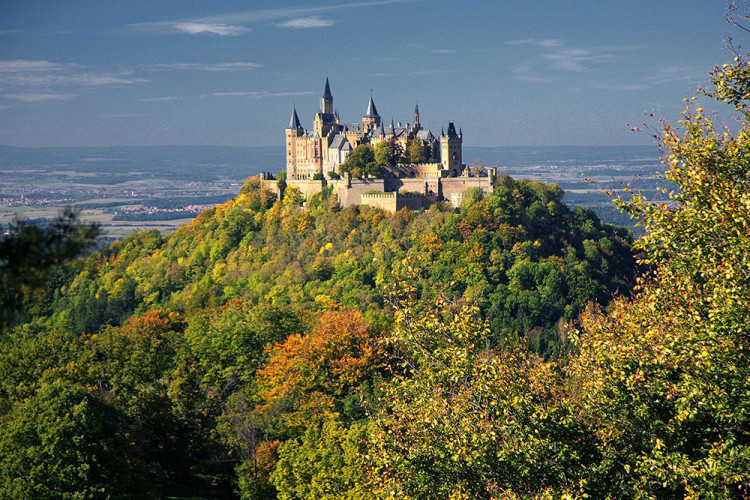 のどかな田園地帯の山の上にそびえ立つホーエンツォレルン城。11世紀に起源を持つこの城はドイツ3大名城の一つで、ドイツ皇帝をも輩出した由緒あるお城です。