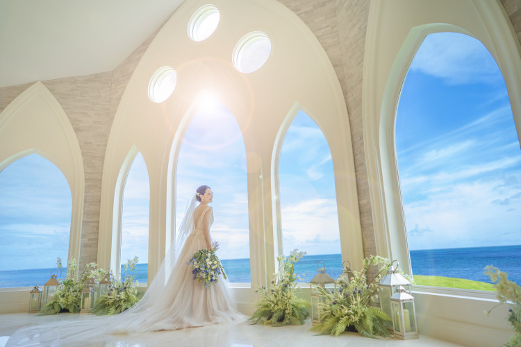コバルトブルーの海と空が目の前に広がる祭壇で、永遠の誓いを。