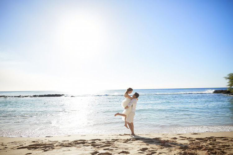 ワイキキ近郊の海をバックにしたビーチ撮影。ゲストとご一緒に撮影も可能!