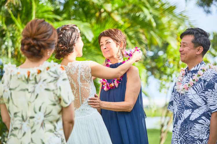 「ありがとう」「いらっしゃいませ」という意味をもつフラワーレイ。ハワイまで来てくれてありがとうと言う意味を込めてゲスト様に送ったあとにハグをすれば絆が深まること間違いなし!