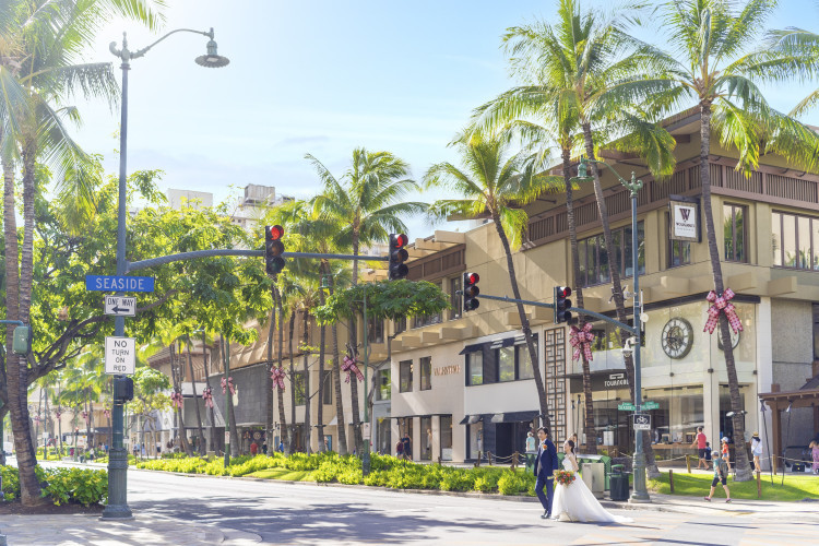 カラフルな街中にはハワイらしさがたくさん、オシャレなSHOPやラグジュアリーブランドも。
