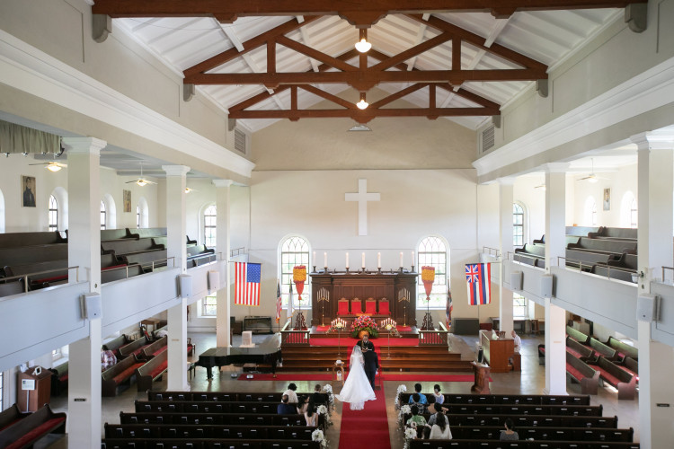 ハワイの重要文化財にも指定されており、歴代のハワイ王朝の戴冠式や結婚式も執り行ってきた格式のある教会。2500本ものパイプからなるパイプオルガンの荘厳な音色に包まれた厳かなセレモニーが叶います。