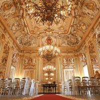 豪華絢爛な彫刻とシャンデリアで埋め尽くされた宮殿ウェディング