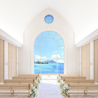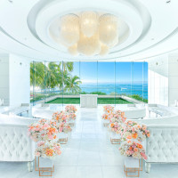 個性的なスタイルの人気チャペル。波音をバックにシーサイド・ウエディングを